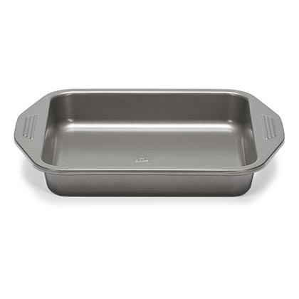 - USE & CARE: Before first use, wash your bakeware in warm soapy water and rinse well after removing the label and any adhesive used to make the label stay in place After subsequent uses, hand wash with warm soapy water and make sure your pans are totally dry prior to storage Mixes and recipes may vary. Fill the pan no more than 3/4 full to avoid overflow. Metal utensils, scouring pads and abrasive cleaners should NOT be used on non-stick surfaces. Avoid letting baked goods sit in the pan too long. Allow them to cool and then remove the item from the pan so they don’t stick. Make sure you have something in your pan, dry baking is not a good idea for your pan