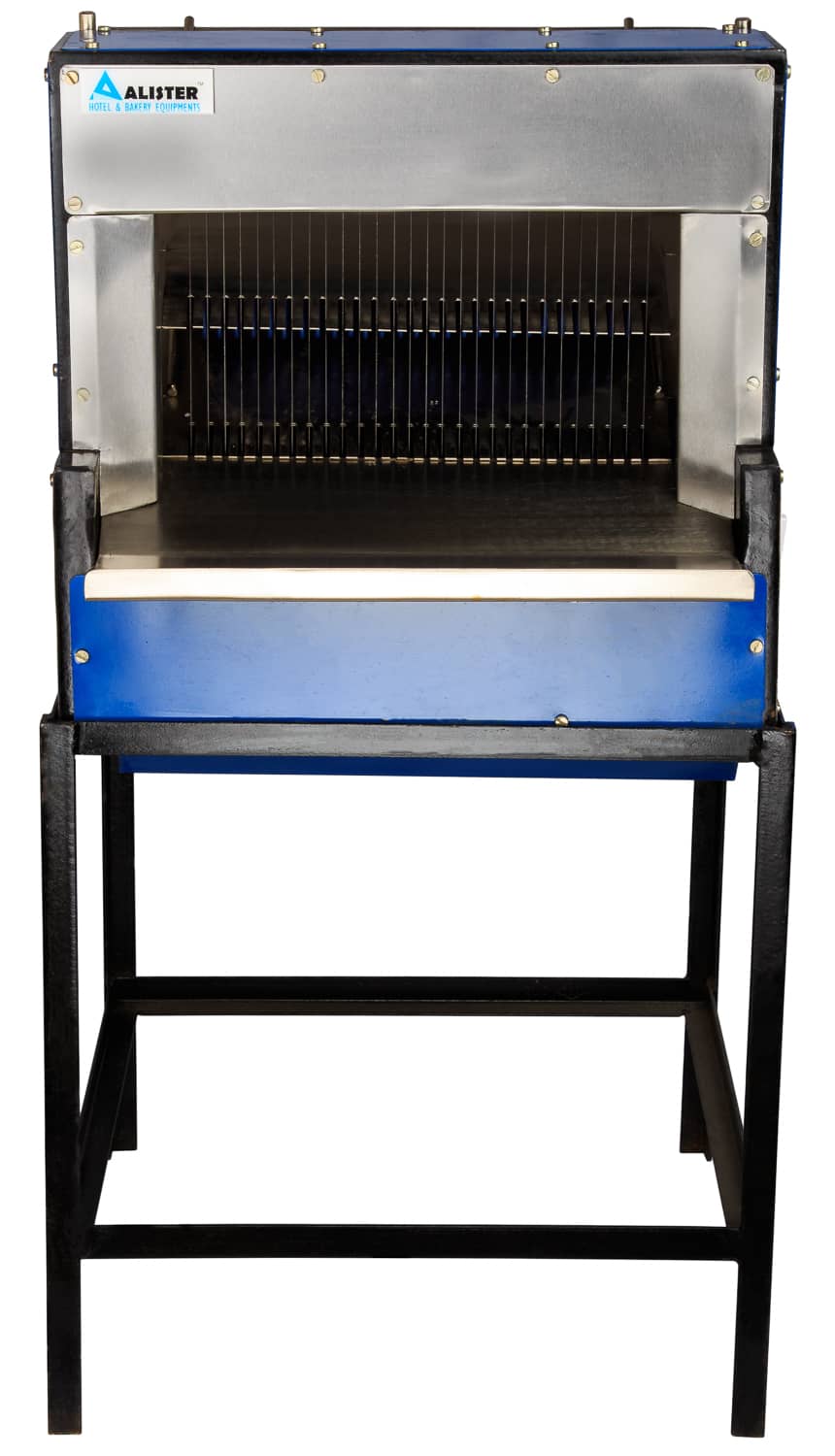 BakeryBuy 10 MM electric bread slicer with 24 SS blades & plastic tray. A perfect slicer to quickly slice bundles of bread loafs. Order now.