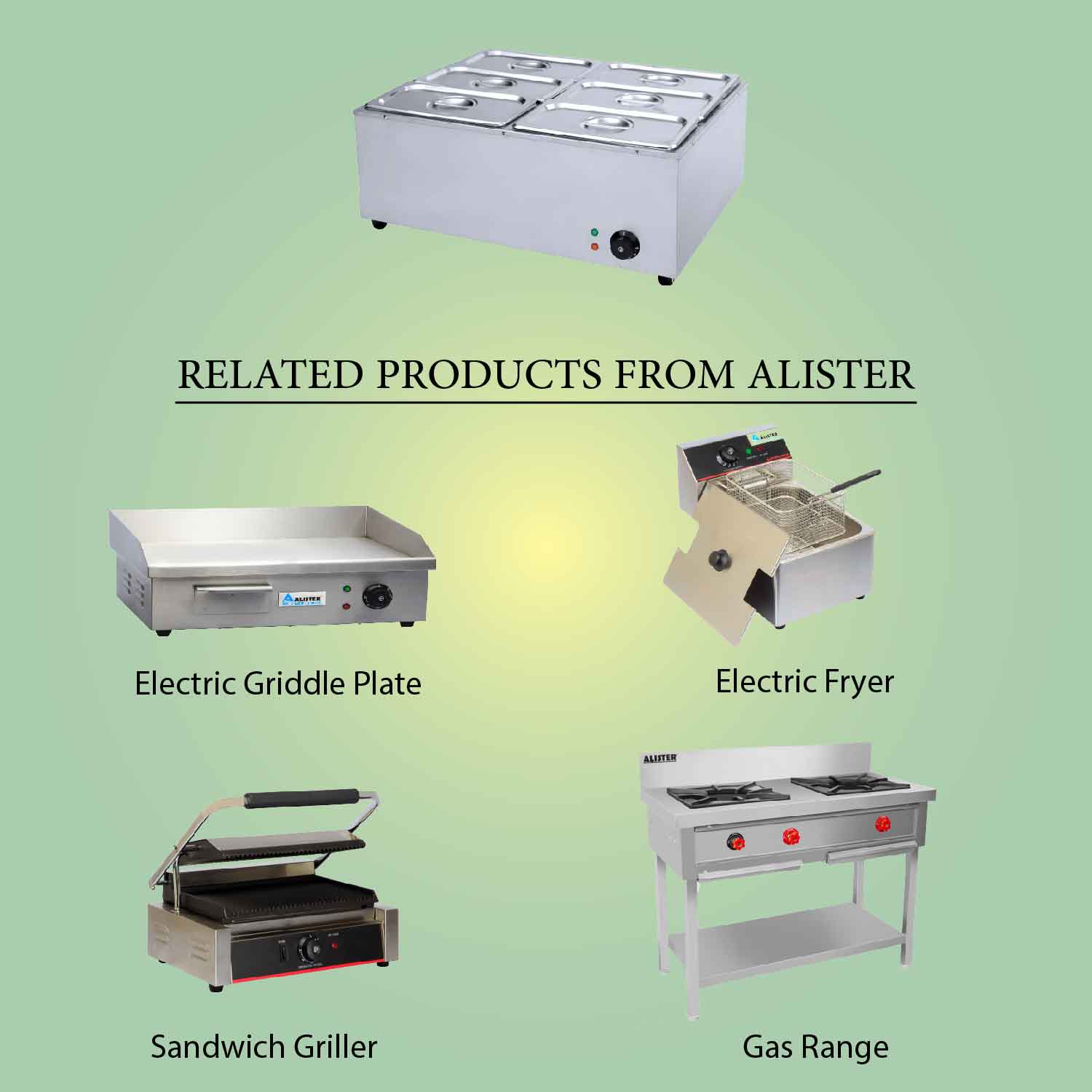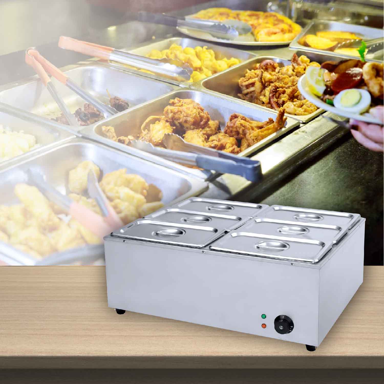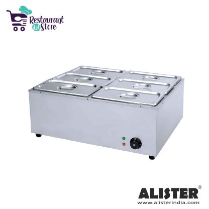 Restaurant,cafe,bakery,cloud KitchenA counter top electric Bain Marie with 6 GN pans of 5.4ltr capacity each to keep the food warm & fresh for long hours. Order today.