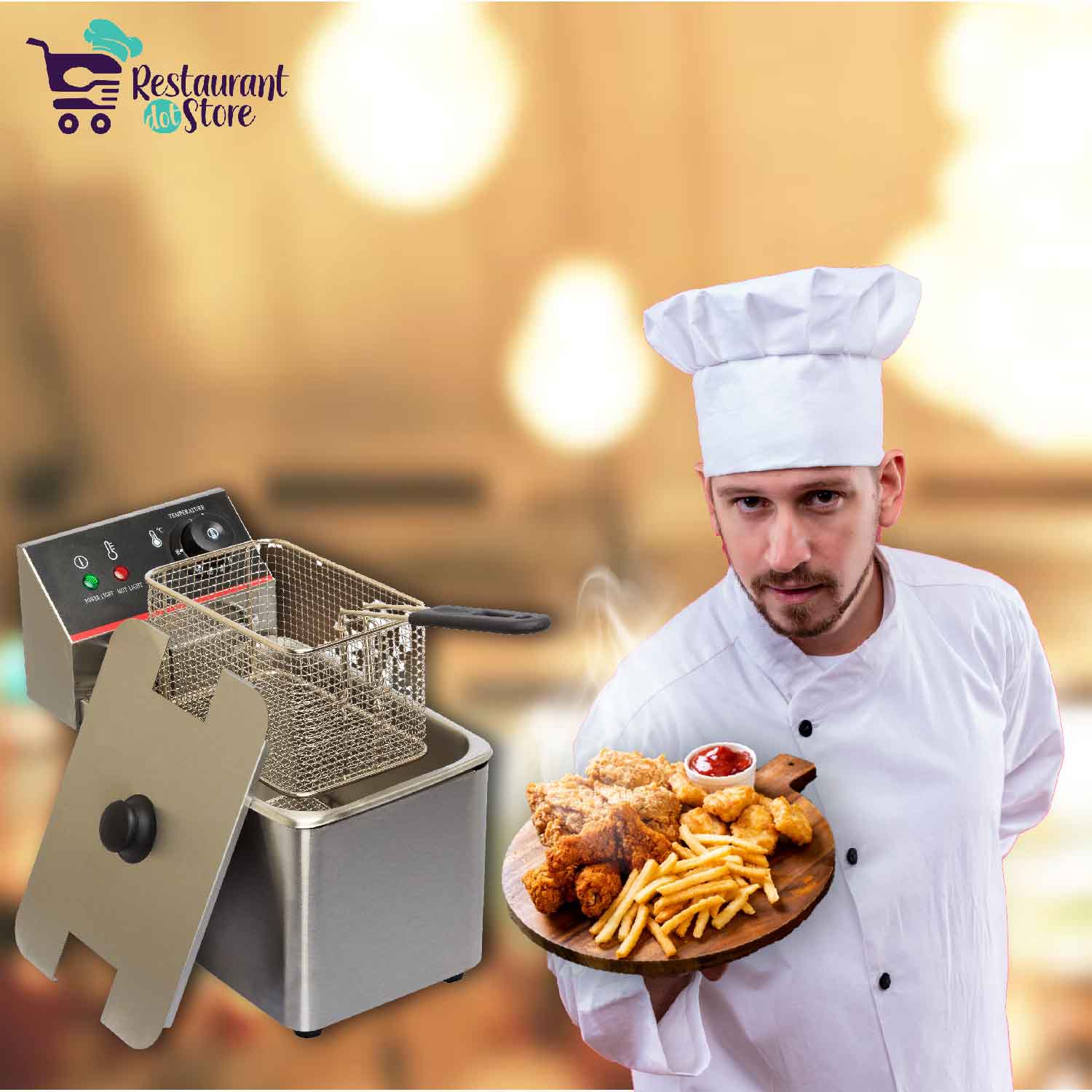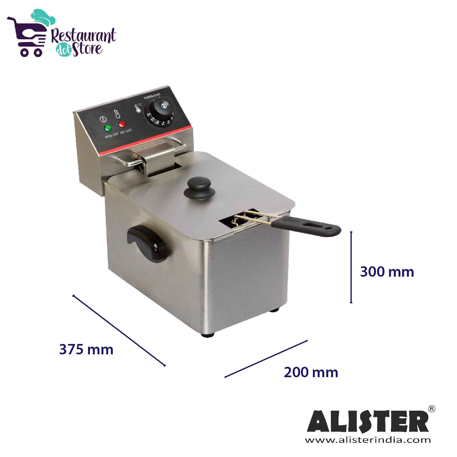 Restaurant,cafe,bakery,cloud KitchenHigh quality commercial electric deep fryer with a capacity of 4 litre, 190°C max temperature, 1 fry basket, and 1 fry pot.