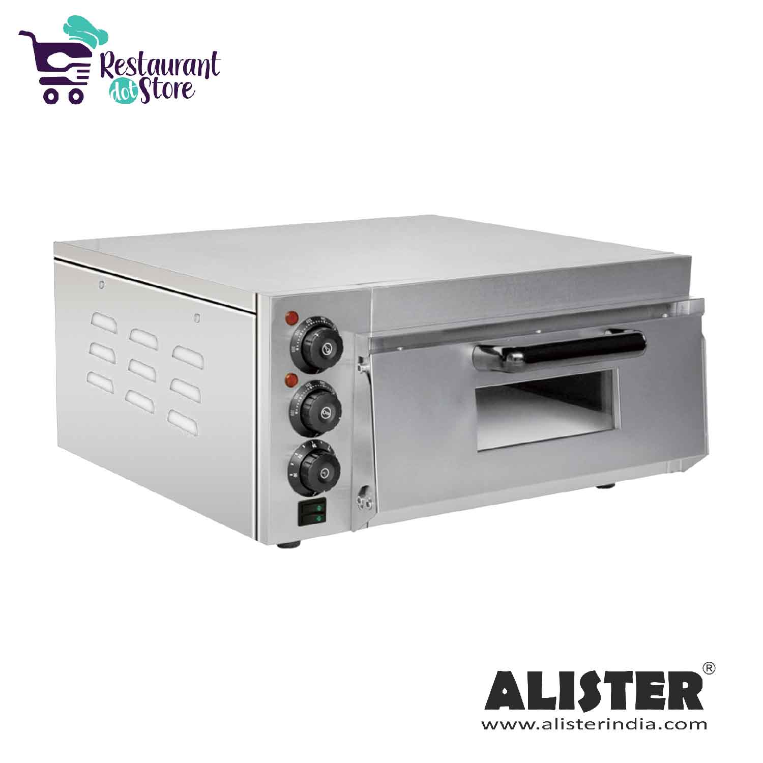 Best electric pizza oven with a stone base, single glass door, single layer, complete steel body, and a capacity of 4 8inches pizza