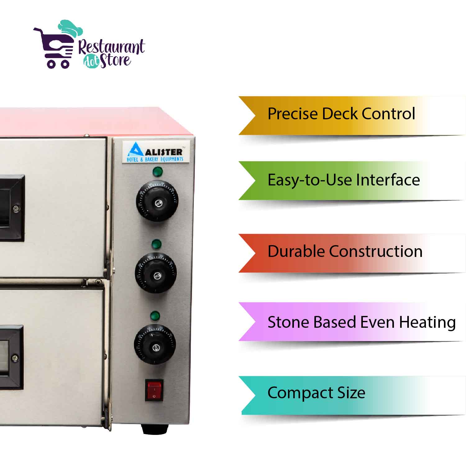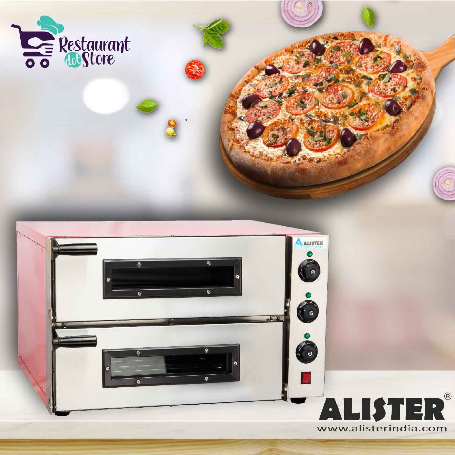 Restaurant,cafeBuy our electric Pizza oven with a capacity of 2 layers, 18inch pizzas, a stone base, and double glass doors. Order now