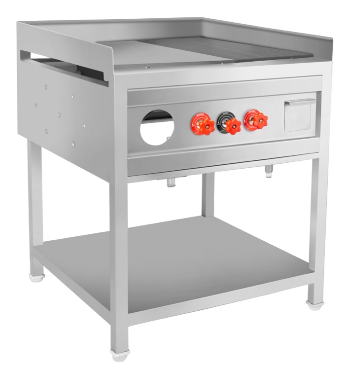 Gas Griddle Plate Half Grooved Top With 3 Side Skirting With 1 Under Shelf