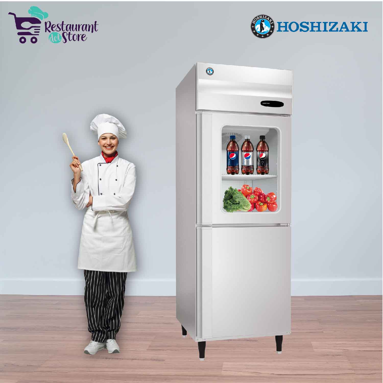 Hoshizaki Ss Two Door Vertical Chiller With One Glass Door