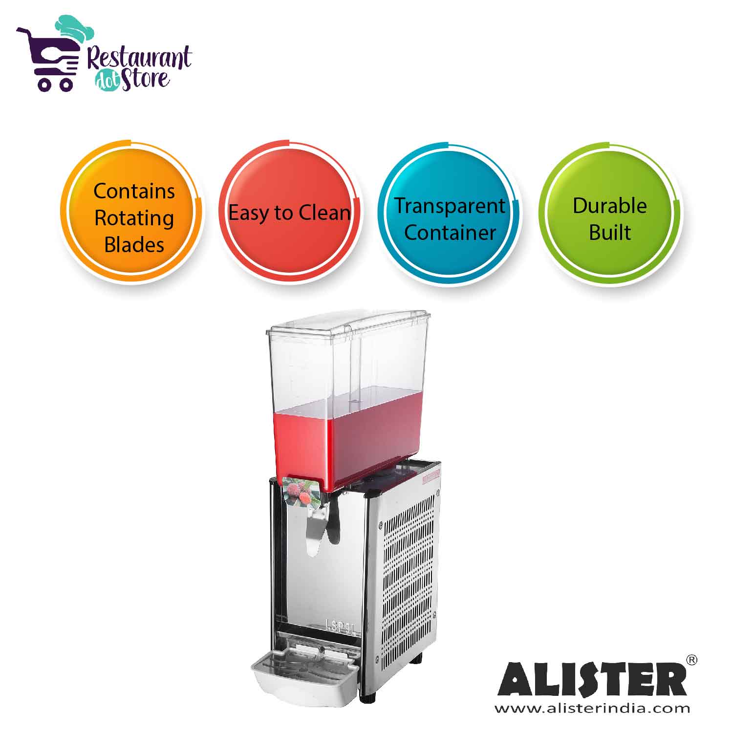 Restaurant,cafe,hotels,barsA perfect single-jar refrigerated dispenser for cold beverages having a capacity of 9 litres. This electric dispenser comes with a rotating blade mixing feature