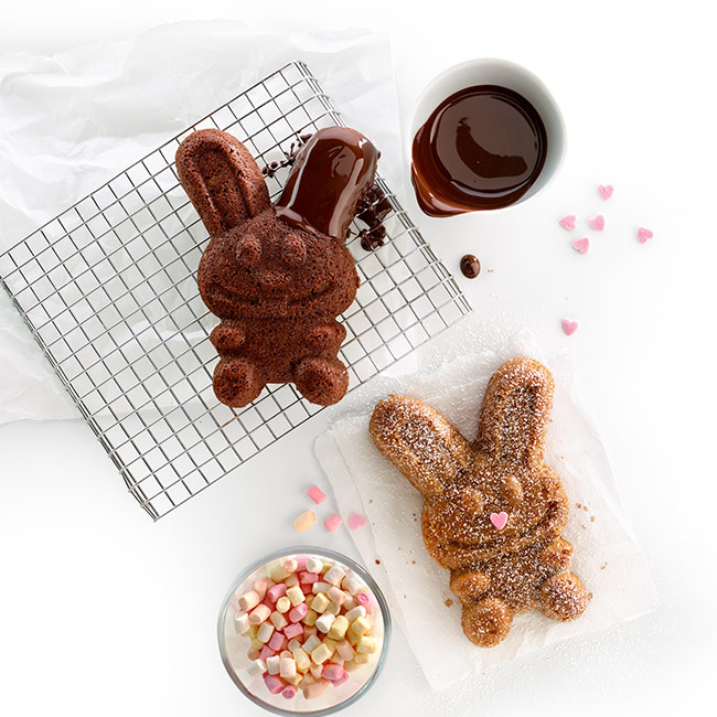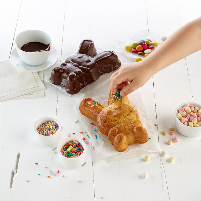 Two fun moulds in a mini bunny shape! Bake with your children, a small investment with big returns. Let your imagination run wild decorating cakes for special occasions and celebrations. Fun is guaranteed! It includes 2 units