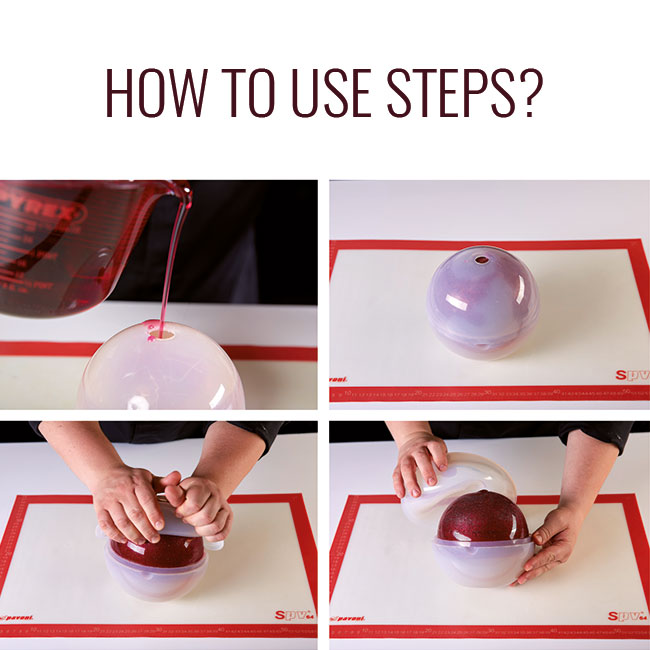 - Silicone sphere moulds available in three different sizes, designed to create artistic sugar show pieces. The mould is developed in cooperation with Emmanuele Forcone. The specific three dimensional design allows a much faster cooling of the sugar. The cavity guarantees the easy demoulding of the product.