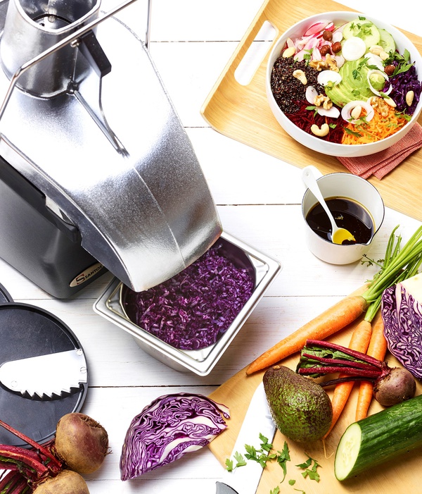• The vegetable 48 slicer is a powerful and robust appliance adapted to intensive use. A complete range of dics is available on demand to cut, slice, grate and shred.