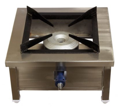 A single burner gas range suitable for bulk cooking with stainless steel body and bottom burner. A must have equipment for your restaurant.