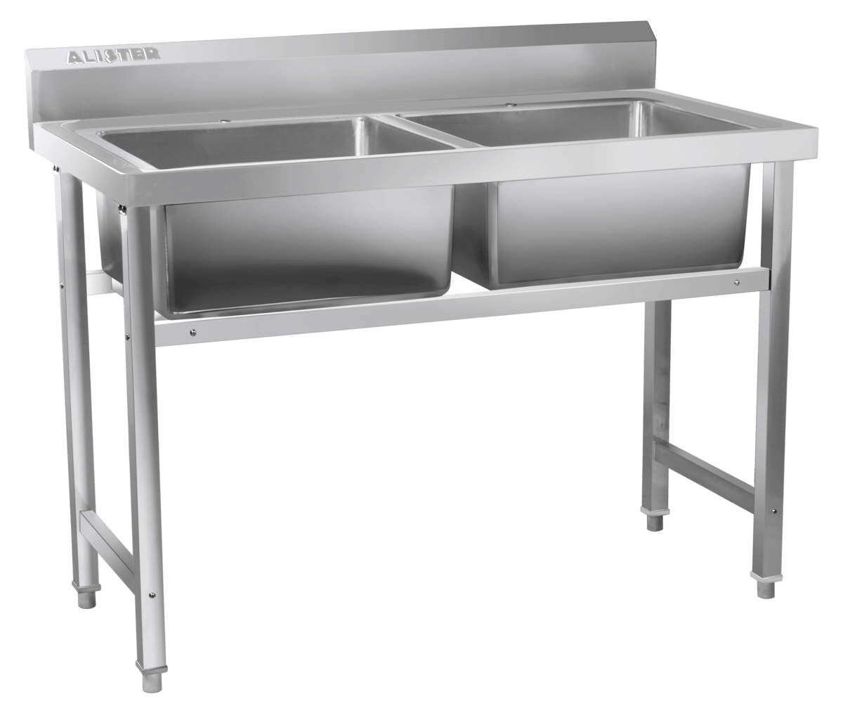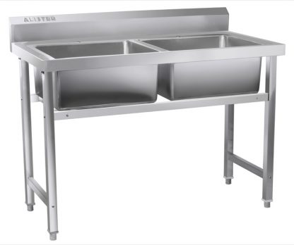 Buy a two-sink unit made with stainless steel body. It also comes with a splash-back.