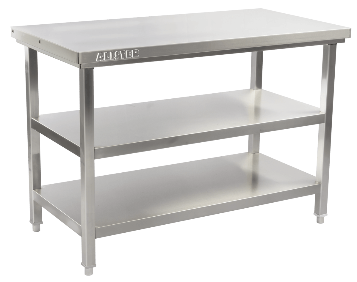Buy a 3ft work table with stainless steel body and 2 under shelves to make prep in your commercial kitchen easy