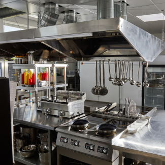 Essential commercial kitchen equipment for a resto-bar includes commercial refrigeration units (e.g., refrigerators, freezers), cooking equipment (e.g., grills, fryers, ovens), beverage dispensing systems, bar equipment (e.g., cocktail stations, glassware), dishwashing equipment, and storage solutions. These equipment items are crucial for delivering high-quality food and beverages to customers efficiently.